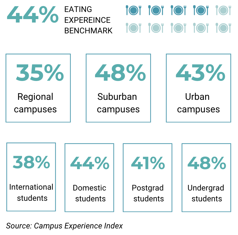 Out of the 10-15 questions we ask in our Campus Experience Index survey, students almost always rate eating experience as the lowest scoring category Recently we have seen some of the poorest results since the start of the Index.
